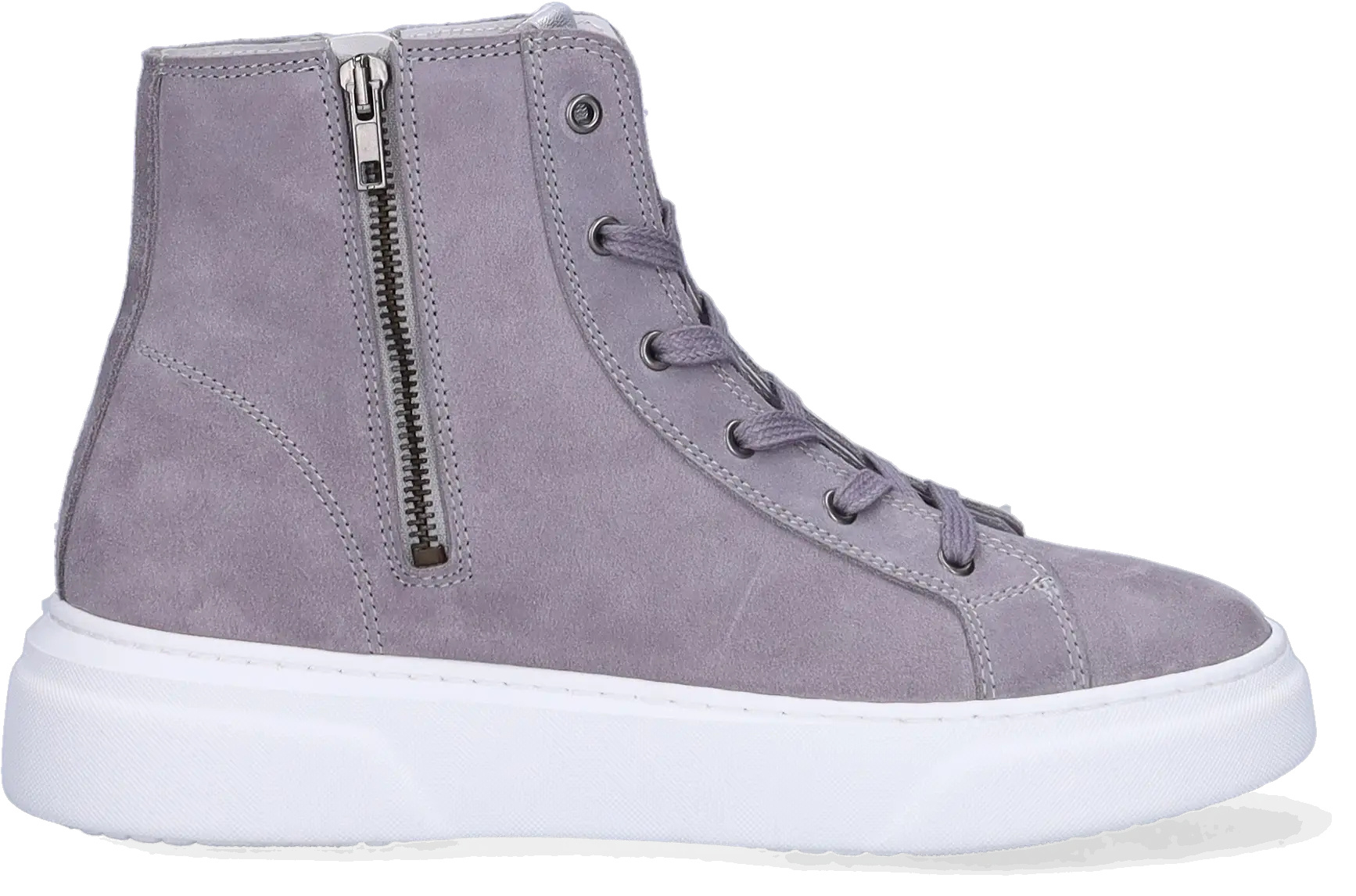 De grijze variant van La Paz is een zachte suéde sneaker met hoge wreef, voor dames met smalle voeten. Uitgerust met een rits aan de zijkant en een vetersluiting. Geschikt voor steunzolen.