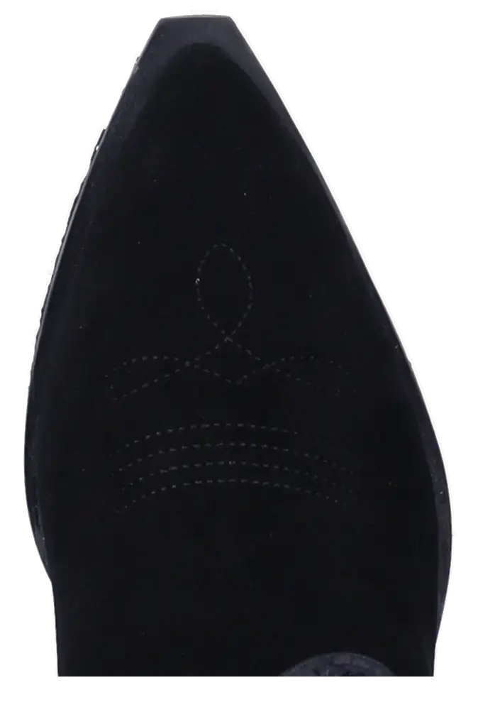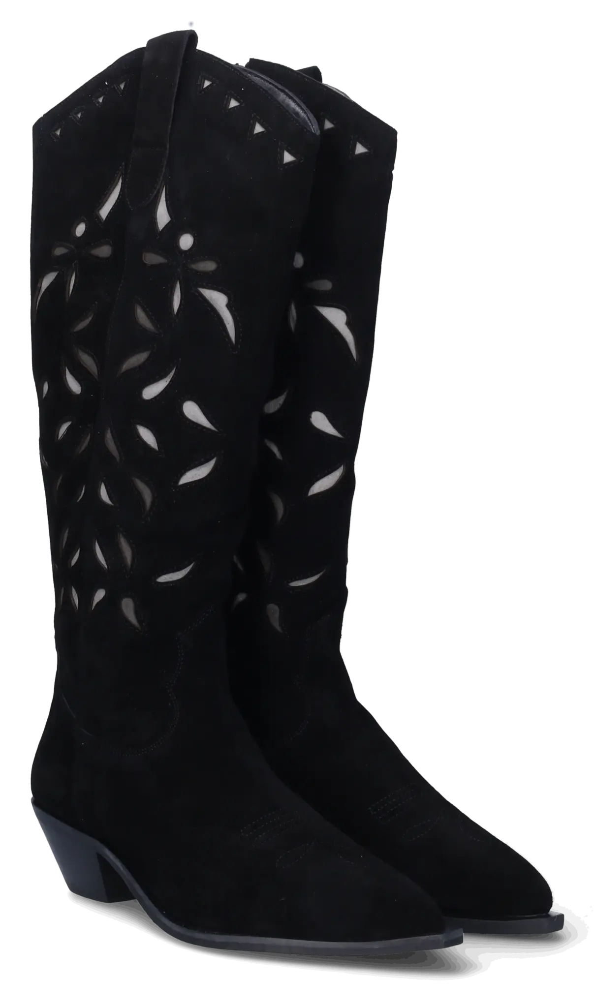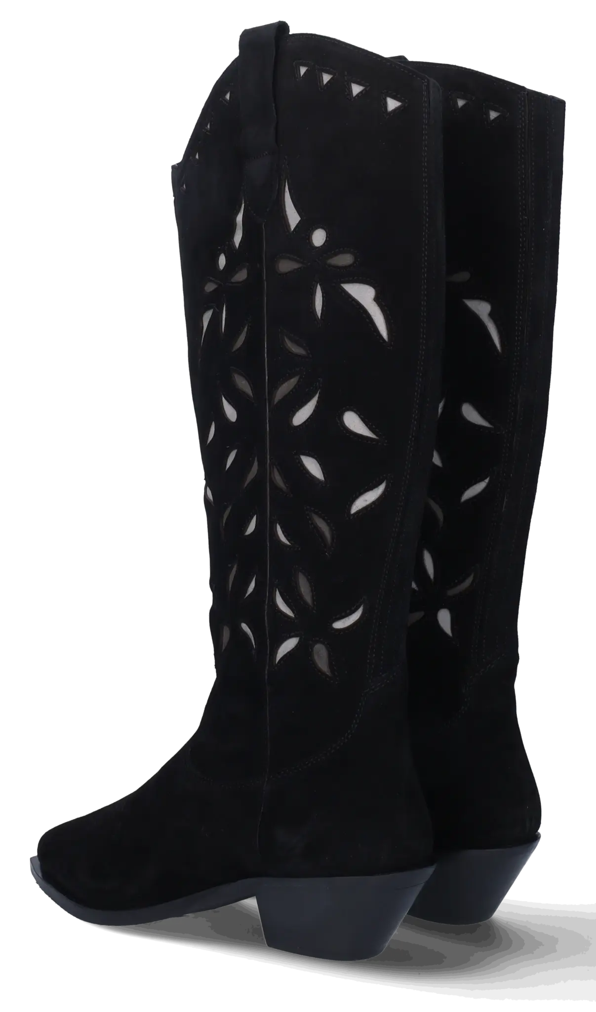 De Longridge in zwart suède straalt kracht en elegantie uit. Deze westernstijl dameslaars is voorzien van een uitneembaar voetbed voor optimaal comfort en een lange rits om moeiteloos aan en uit te trekken. Het opvallende borduursel en de uitgesneden vormen in de schacht zorgen voor een unieke, eigentijdse uitstraling. De spitse neus en lage hak maken dit model favoriet bij zowel urban looks als casual outfits. Kies voor statement style en draagbare luxe met deze stoere zwarte cowboylaars