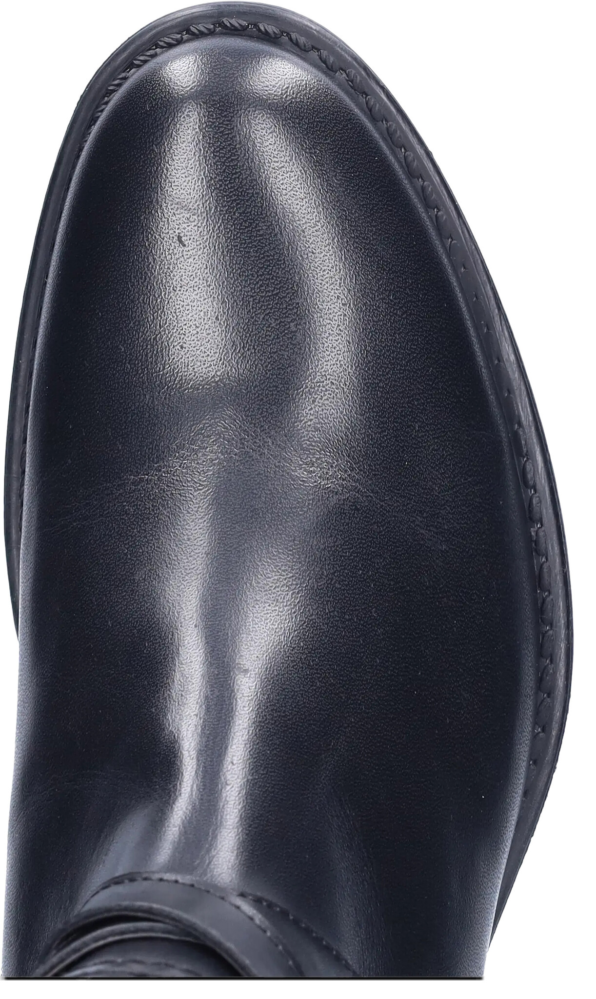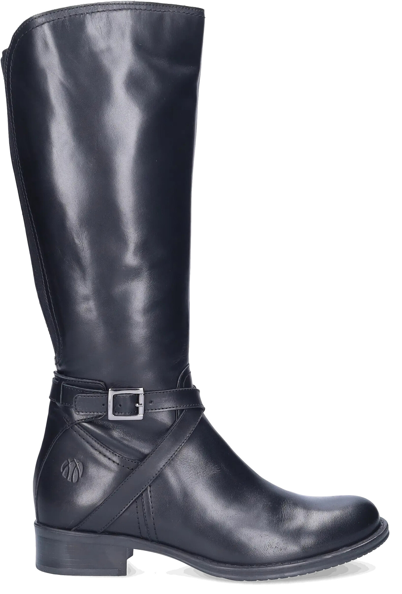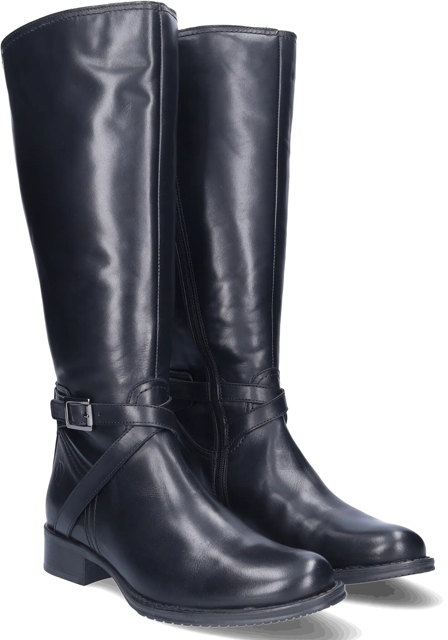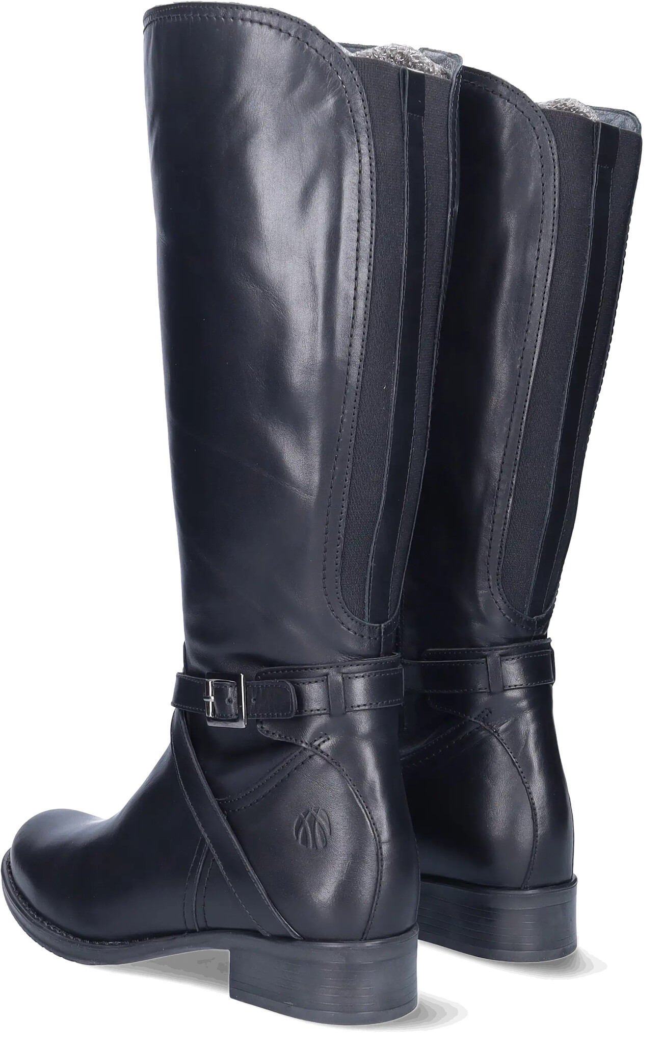Melbourne is een zwarte lederen laars met brede schacht, uitgerust met een lage hak. De subtiele band en gesp zorgen voor een elegante uitstraling. Aan de achterzijde zijn twee elastieken aangebracht, waardoor de laars mooi om het been sluit en extra draagcomfort biedt. De antislip zool zorgt voor extra grip, terwijl het uitneembare voetbed het mogelijk maakt om steunzolen in de laars te dragen.