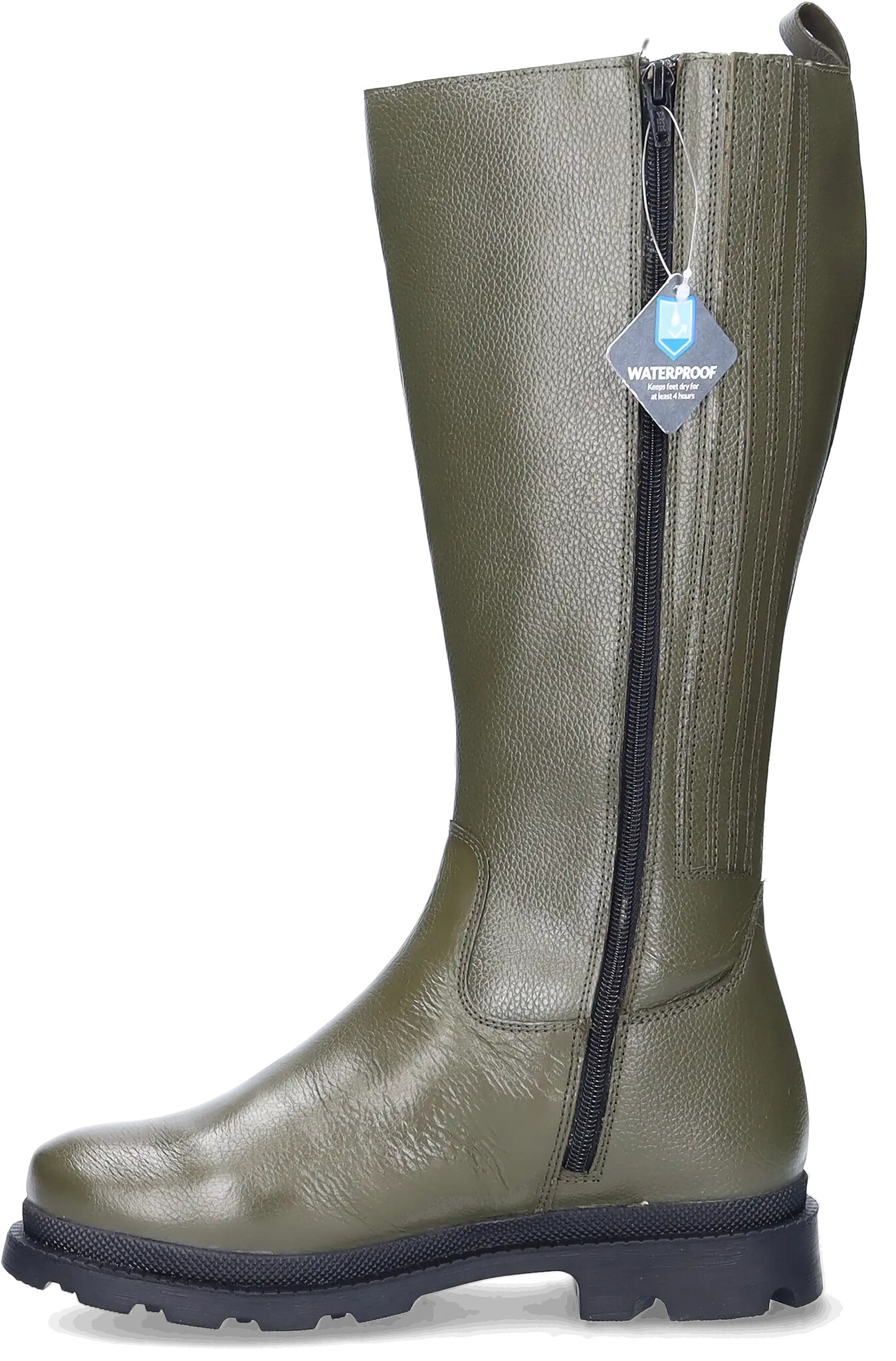 Morley is de perfecte combinatie van stijl en functionaliteit. Deze hoge laars met een extra brede schacht is gemaakt van luxe groen nubuck leer en volledig waterdicht, zodat je voeten droog en comfortabel blijven, ongeacht het weer. Het stretchgedeelte aan de zijkant zorgt voor een flexibele en aansluitende pasvorm, terwijl de comfortabele zool langdurig draagcomfort biedt. Dankzij het uitneembare voetbed kun je gemakkelijk je eigen inlegzolen gebruiken. Ideaal voor zowel casual als elegante outfits. Verkrijgbaar in XL en XXL voor de perfecte pasvorm.
