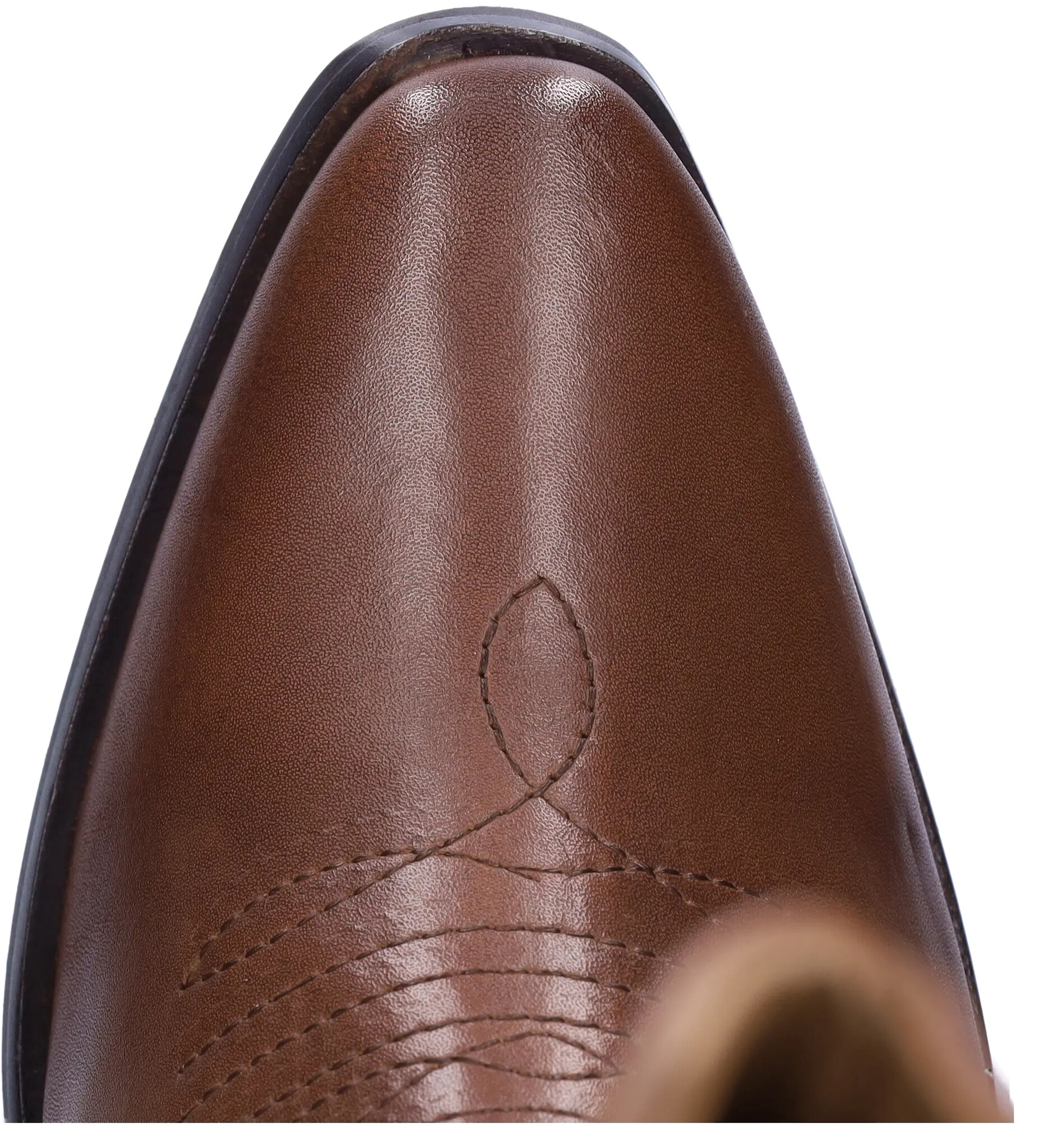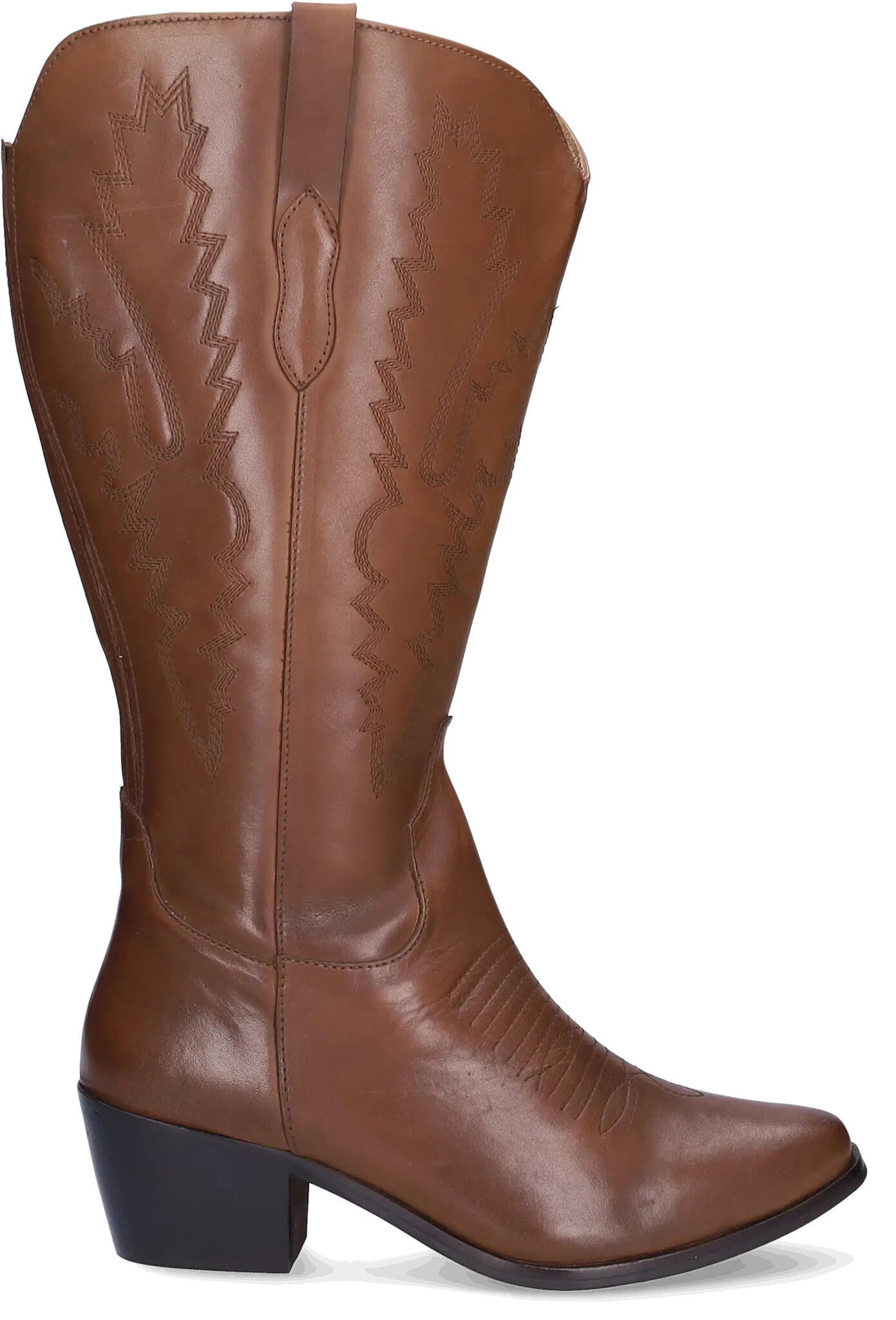 Plymouth is een rijke, cognackleurige leren cowboylaars met brede schacht, die de klassieke westernstijl combineert met modern comfort. Ontworpen met een Cubaanse hak van 4 cm en verfijnde westernstiksels. De uitneembare binnenzool biedt de flexibiliteit om, indien nodig, orthopedische inlegzolen toe te voegen.