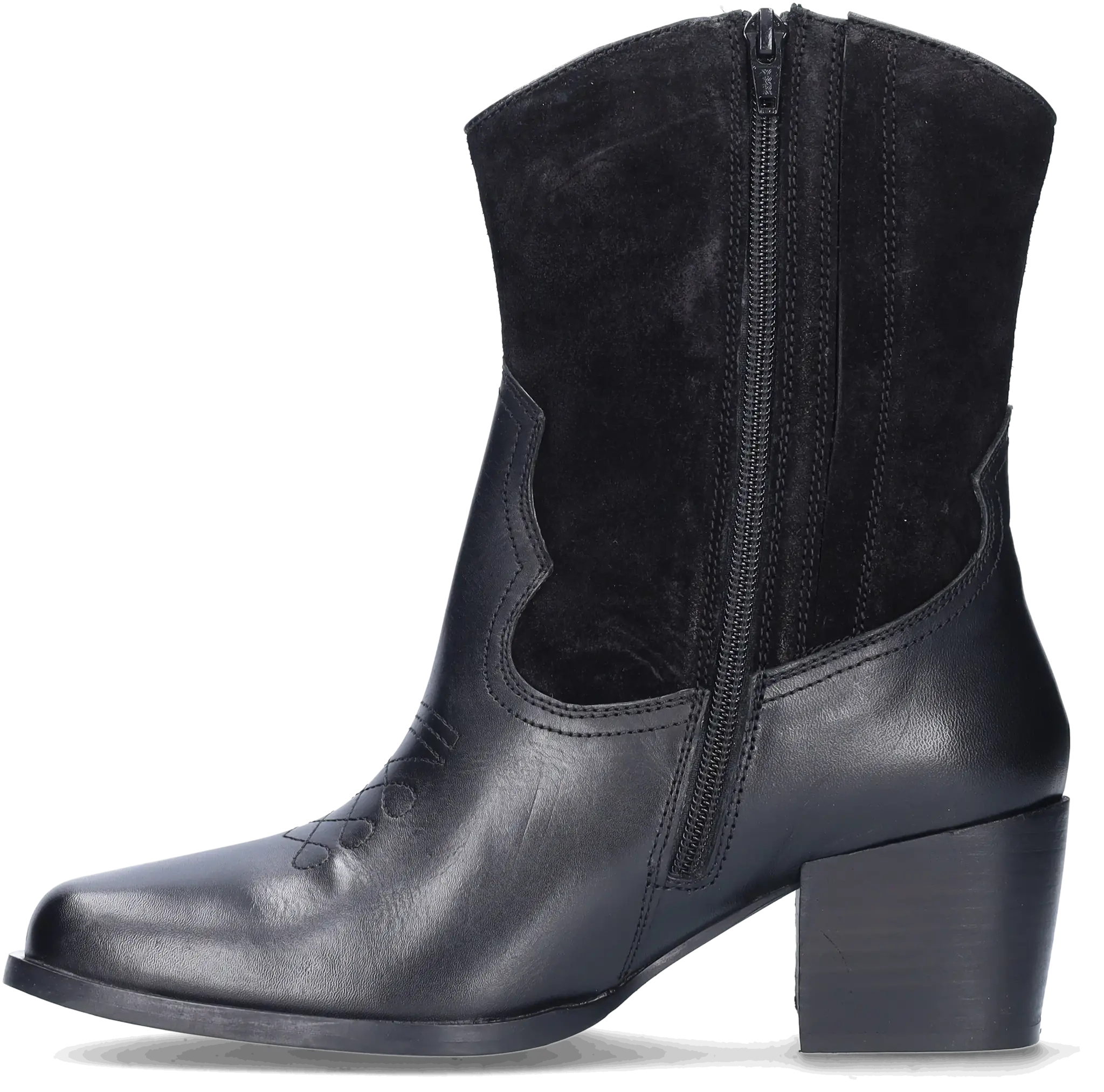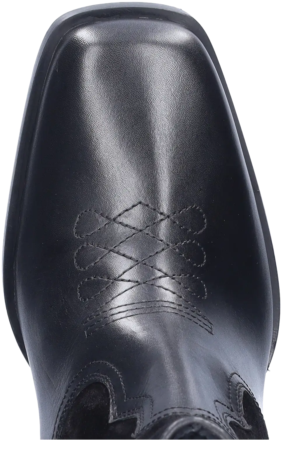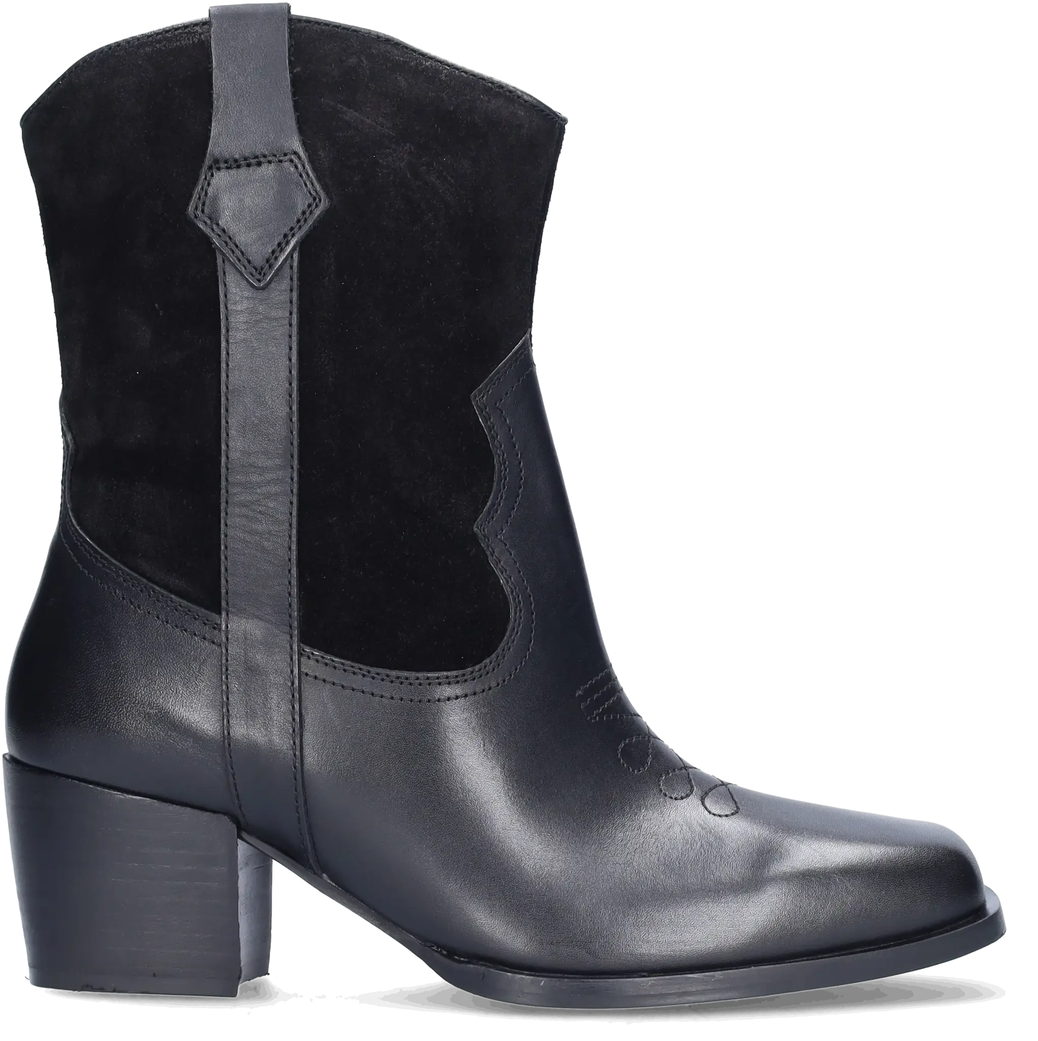 De Strout in zwart is dé perfecte mix van stijl en comfort. Deze korte cowboylaars met extra brede schacht, met een hakje is gemaakt van hoogwaardig 100% leer en suède, wat zorgt voor een stoere en elegante uitstraling.