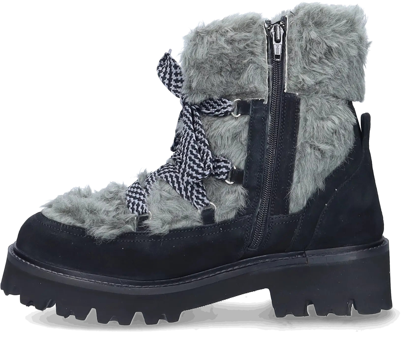 De zwarte variant van Sutton is een zacht en warm lederen wide fit ankle boot gemaakt van fur, een nepbondvoering. Uitgerust met een een dikke rubberen profielzool voor goede grip, een vetersluiting aan de voorzijde en een ritssluiting aan de zijkant. Dit model is geschikt voor het dragen van steunzolen.