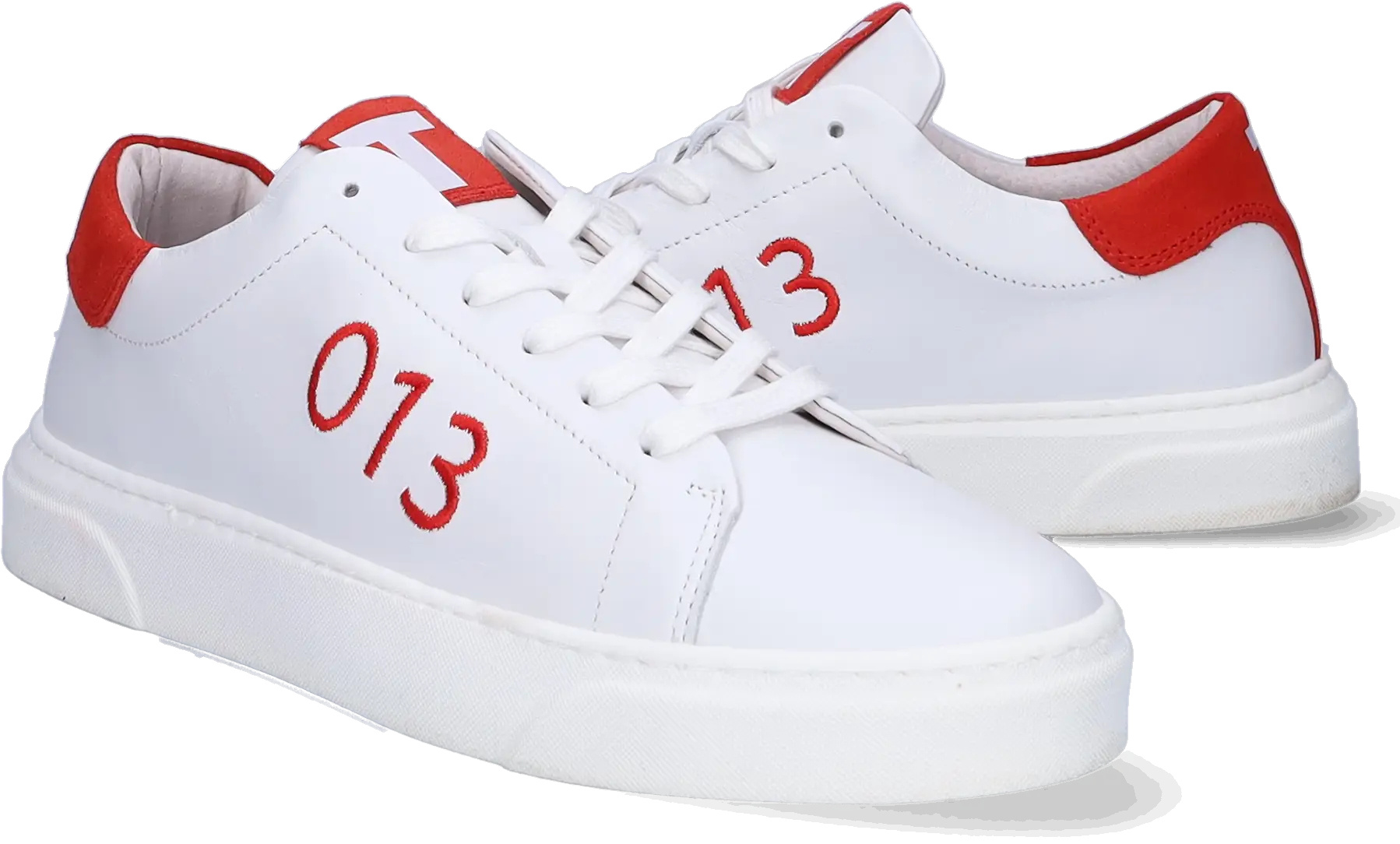 De rood-witte sneaker dames sneaker 'Tilburg' is een model, geschikt voor zowel smalle als brede voeten, die volledig gericht is op deze Brabantse stad. Uitgerust met netnummer '013' en grote 'T' op schoenlip. Beschikt over uitneembaar voetbed.